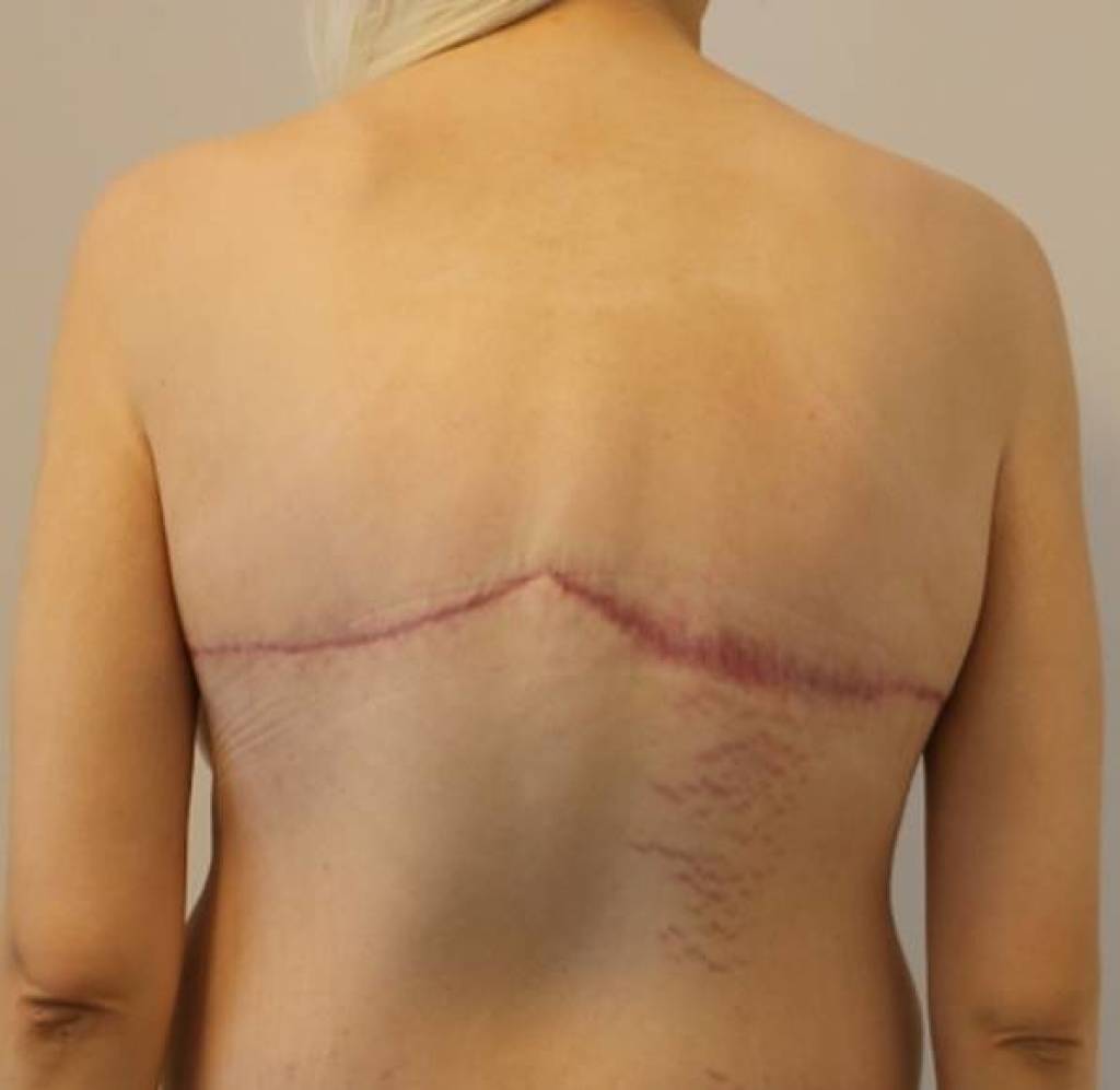 Brystløft og øvre rygløft som en cirkulær procedure med forstørrelse af brysterne med overskydende væv fra ryggen ("Printzlau-metoden"; opfundet af plastikkirurg Andreas Printzlau). Der er ikke anvendt implantater. Arrene på ryggen er placeret således at de kan skjules af en BH.